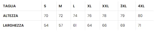 | Taglia | S, M, L, XL, XXL, XXXL, XXXXL |