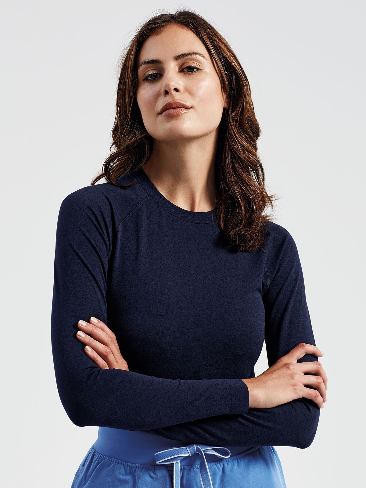 a maniche lunghe e traspirante, ideale sotto la divisa sanitaria. Tessuto elasticizzato con finitura deodorante naturale allโestratto di menta piperita.