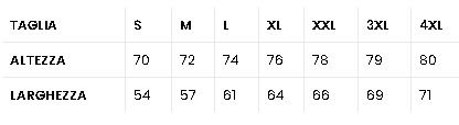 | Taglia | S, M, L, XL, XXL, XXXL, XXXXL |