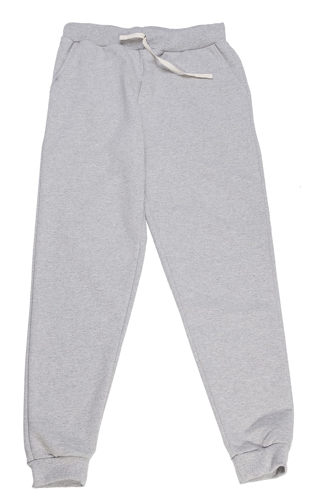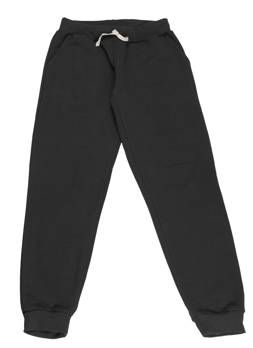 - Pantaloni con polsini alle caviglie, non felpati internamente, elastico in vita e cordoncino a contrasto