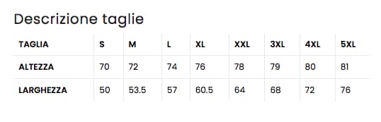 | Taglia | S, M, L, XL, XXL, XXXL, 4XL, 5XL |