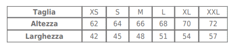 Altezza ( da fine colletto a girovita) Larghezza (da sotto ascella a sotto ascella)